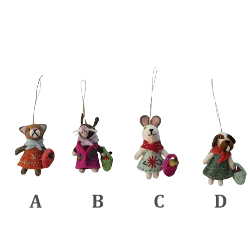 4.25" wool felt animal in clothes with bag ornament