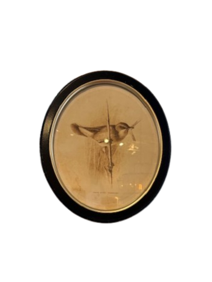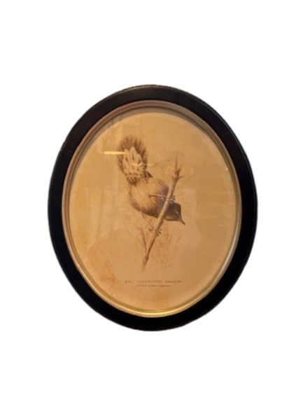 11.75" x 13.75" oval framed bird print, wood frame with glass