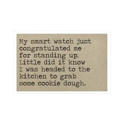 "my smart watch just congratulated me for standing up. little did it know i was headed to the kitchen to grab some cookie dough."