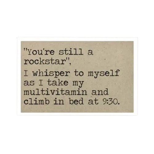 "'you're still a rockstar', i whisper to myself as i take my multivitamin and climb in bed at 9:30pm."